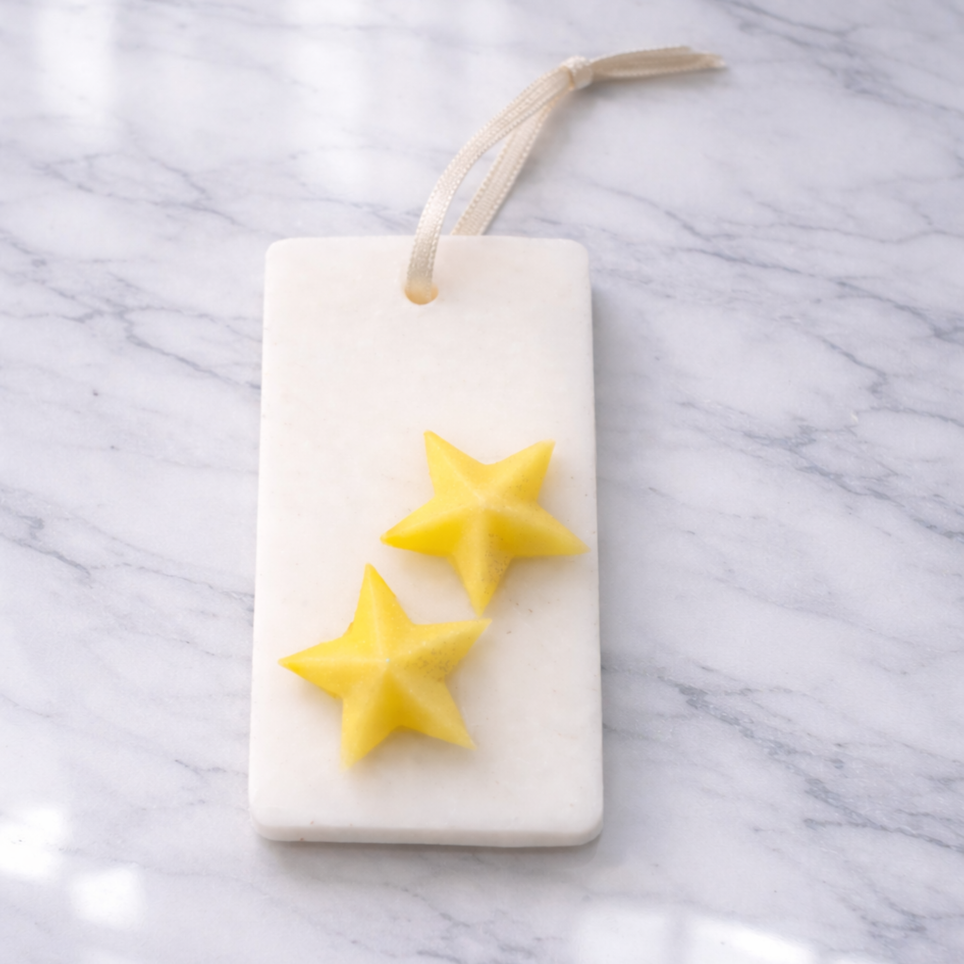 Είναι ιδανικές για χρήση σε ντουλάπες, συρτάρια, μπάνιο ή μικρούς χώρους, αλλά και ως ιδιαίτερο δωράκι ή μπομπονιέρα για γάμο, βάπτιση ή άλλες ξεχωριστές στιγμές. Κάθε ταμπλέτα διαθέτει κορδέλα ώστε να κρεμιέται εύκολα και να λειτουργεί ταυτόχρονα ως διακοσμητικό στοιχείο. Η σύνθεση ολοκληρώνεται με 3 κουφέτα σε τούλι και σατέν κορδέλα, δημιουργώντας ένα προσεγμένο και καλαίσθητο αναμνηστικό για τους καλεσμένους σας.