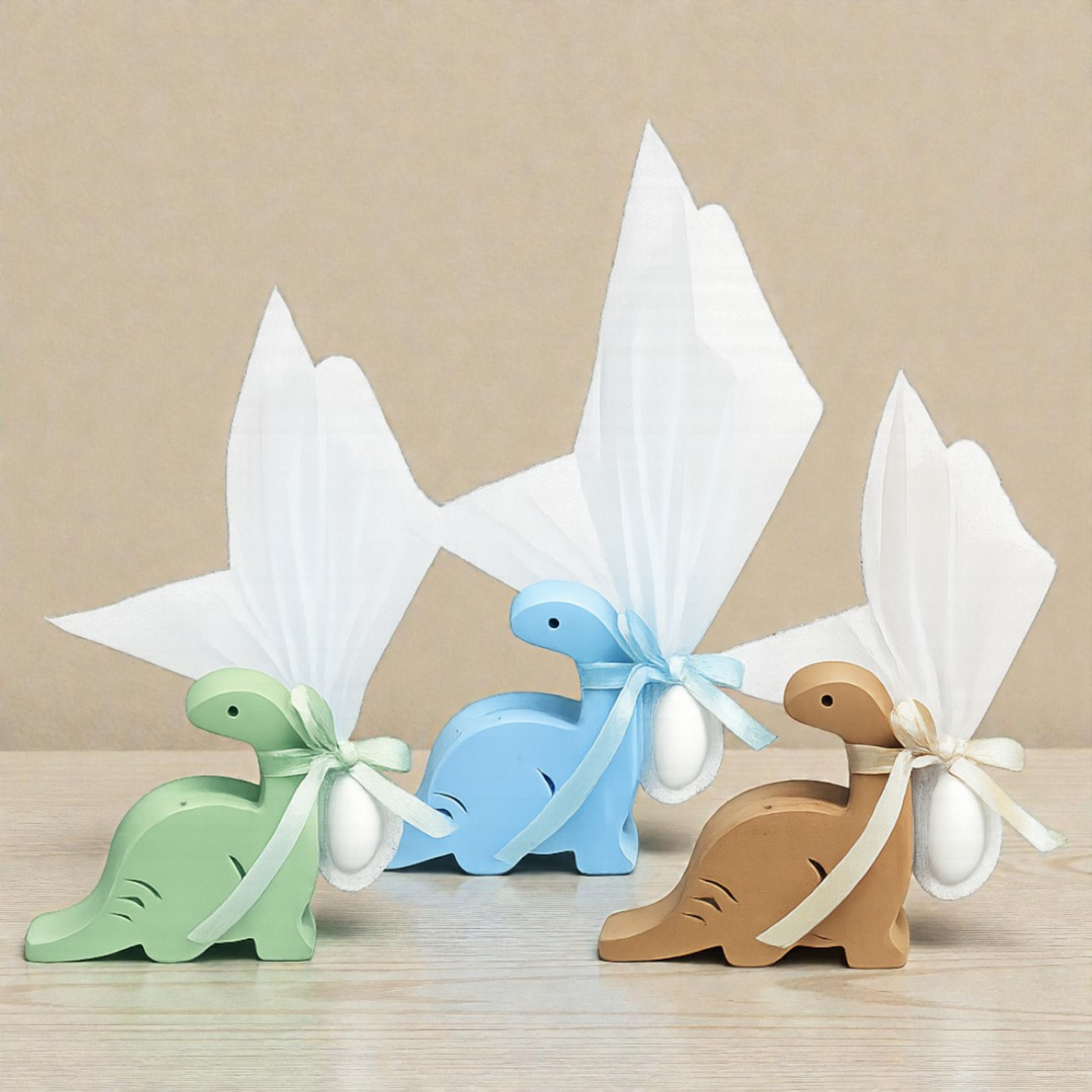 Το χαρούμενο σχέδιο δεινόσαυρου συνδυάζεται με προσεγμένο δέσιμο και μπορεί να διατηρηθεί ως αναμνηστικό διακοσμητικό μετά το μυστήριο.