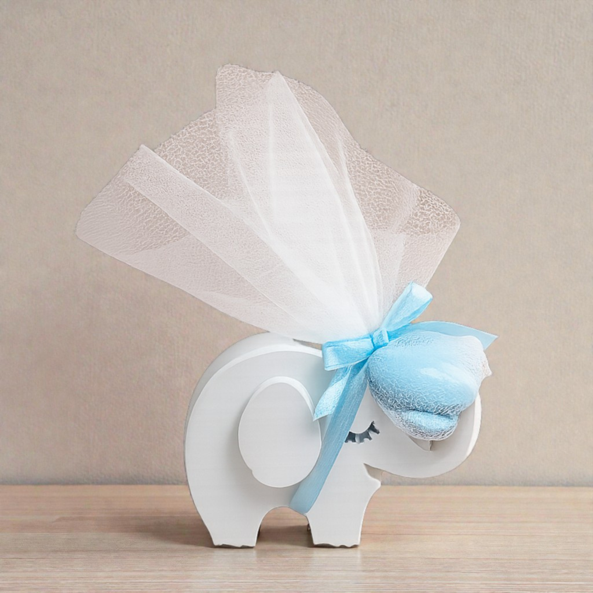 Το χαρούμενο σχέδιο του ελέφαντα σε μορφή κεριού συνδυάζεται με προσεγμένο δέσιμο και μπορεί να διατηρηθεί ως αναμνηστικό διακοσμητικό μετά το μυστήριο.
