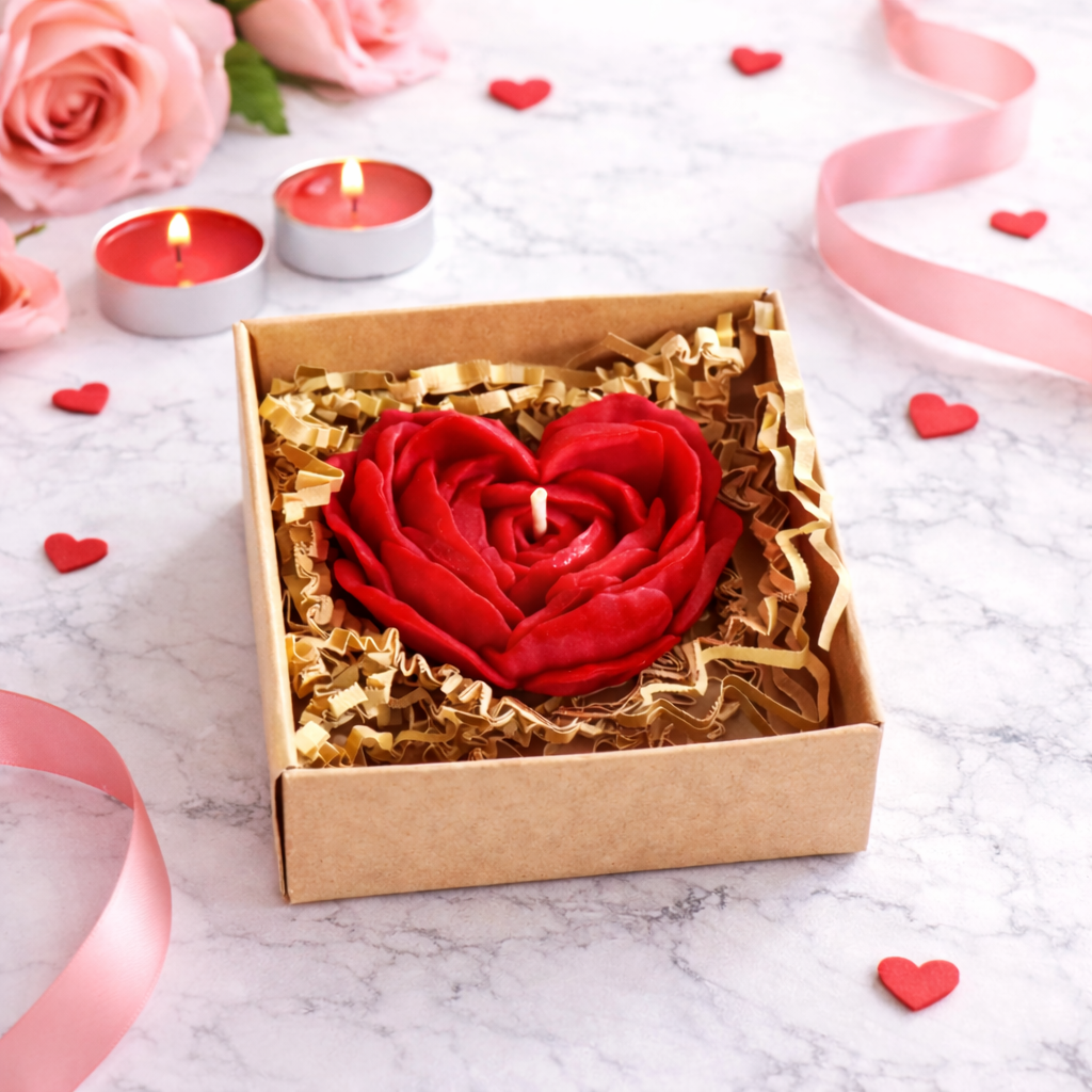 Ένα ρομαντικό λουλούδι σε σχήμα καρδιάς, αποτυπωμένο σε αρωματικό κερί και τοποθετημένο μέσα σε κομψό κουτί δώρου. Ο συνδυασμός της καρδιάς με τη μορφή λουλουδιού δημιουργεί ένα ιδιαίτερο και συμβολικό δώρο, ιδανικό για να εκφράσει αγάπη και συναίσθημα.