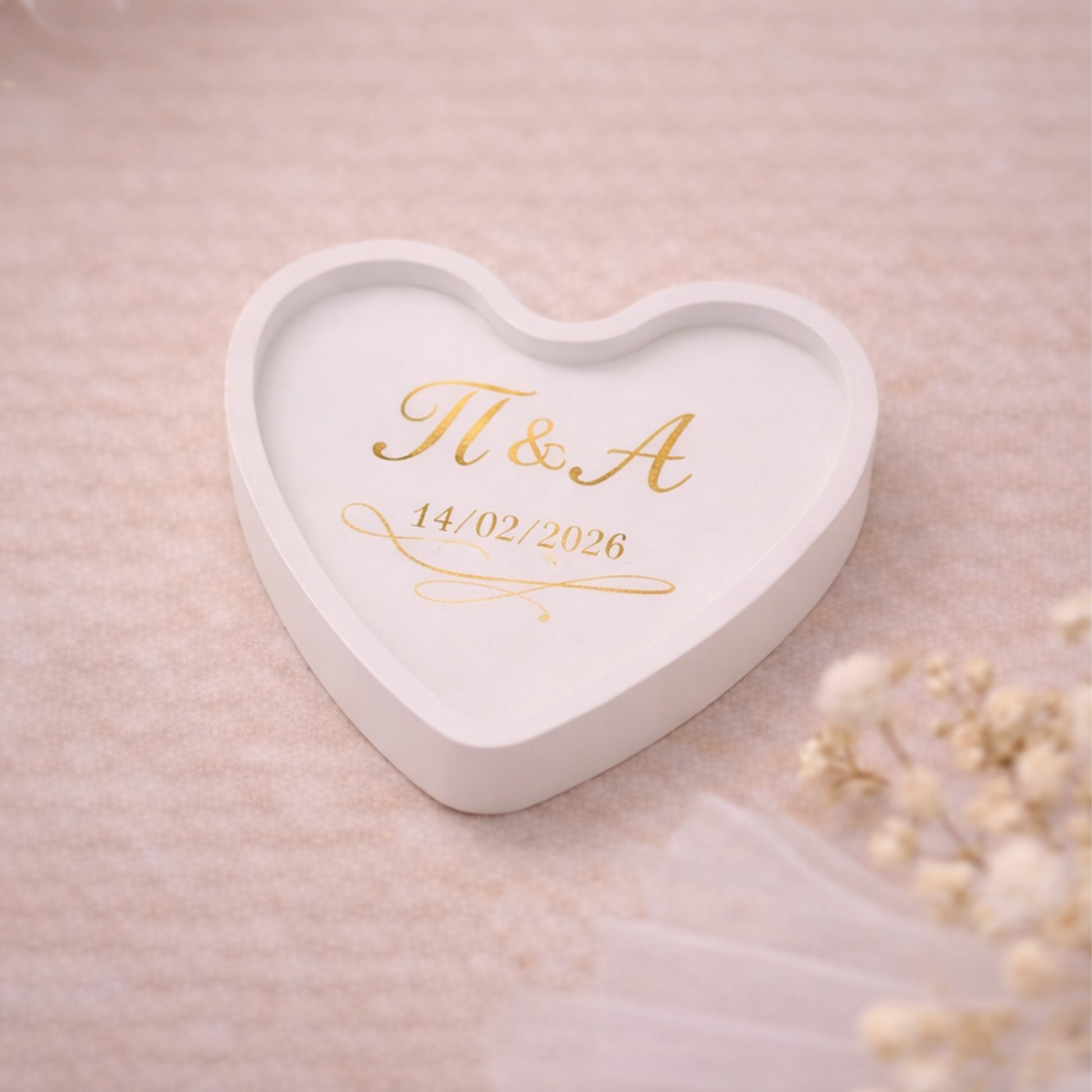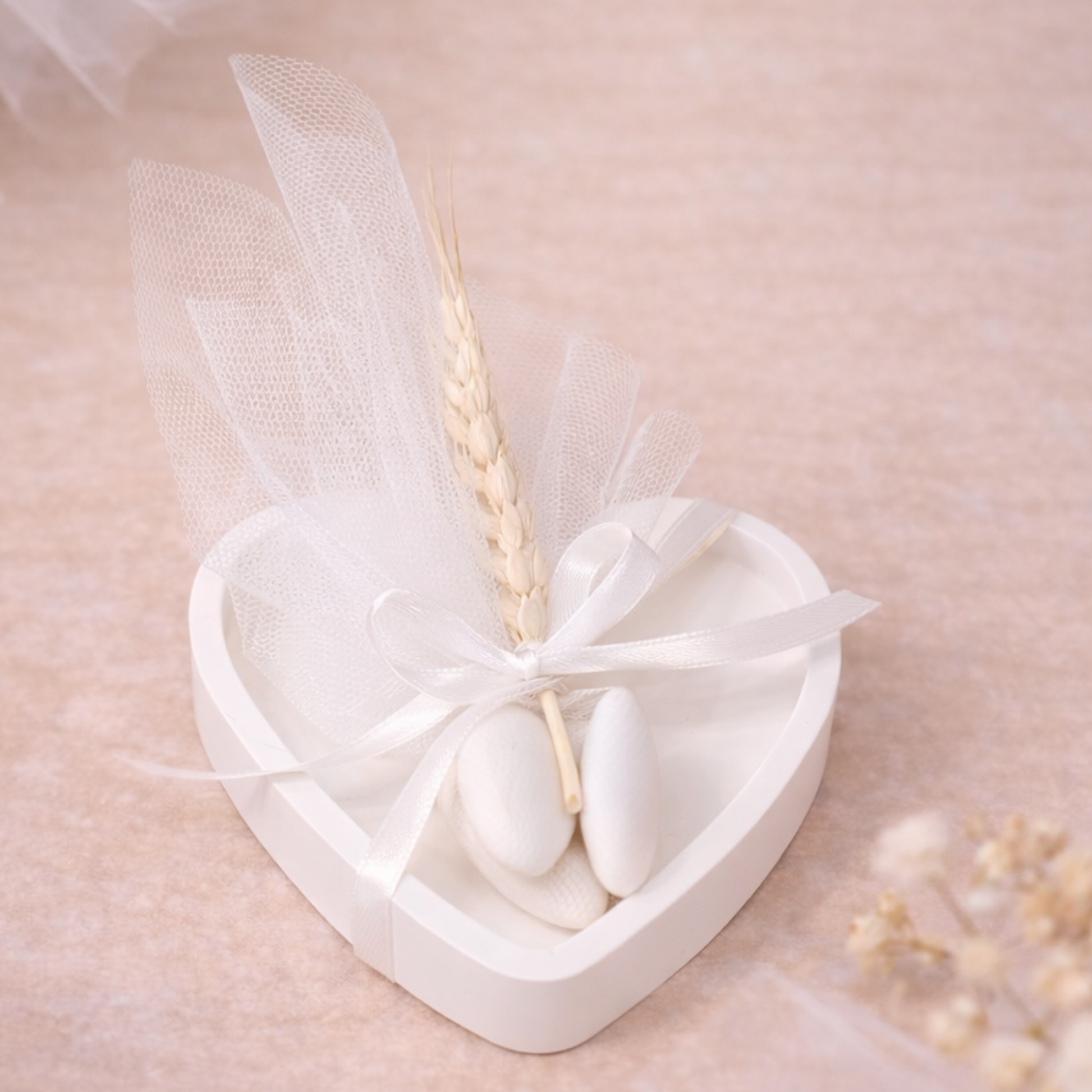 Κομψή μπομπονιέρα από πορσελάνη σε σχήμα καρδιάς, ιδανική για γάμο ή αρραβώνα, με minimal και διαχρονικό ύφος.