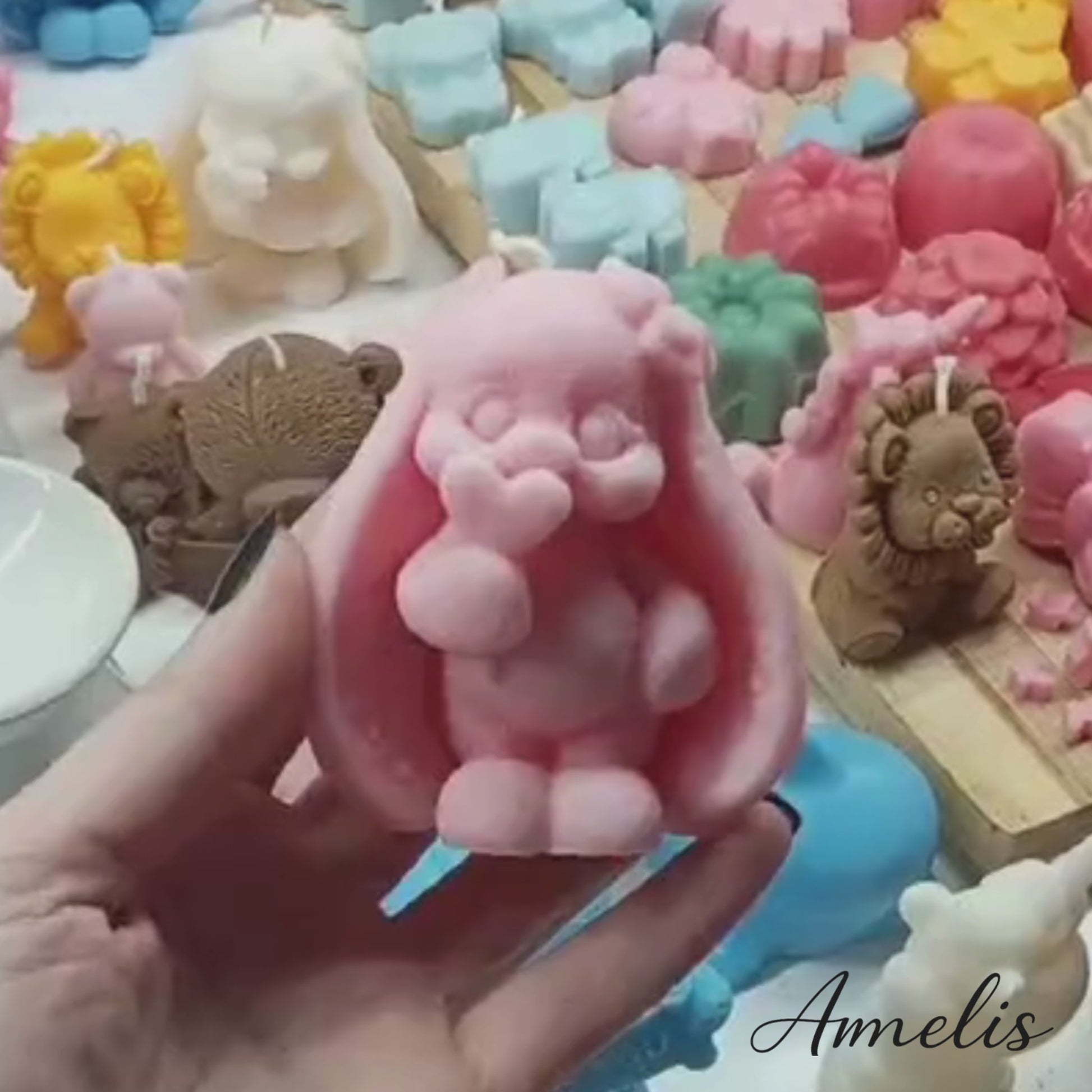 Λαγουδάκι με Καρδιά-Μπομπονιέρα Κερί